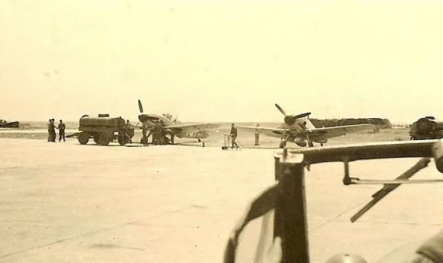 Me109 fighter planes being refueled on airfield