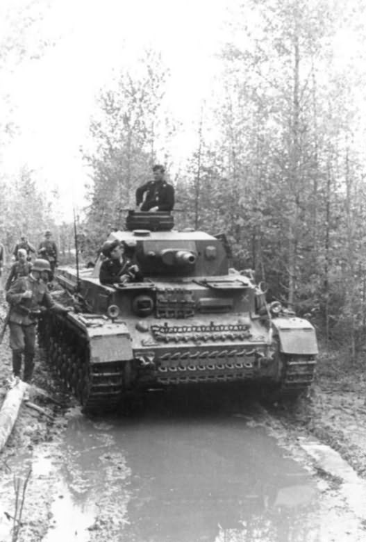 German WWII tank Panzer IV Ausf F1 in mud