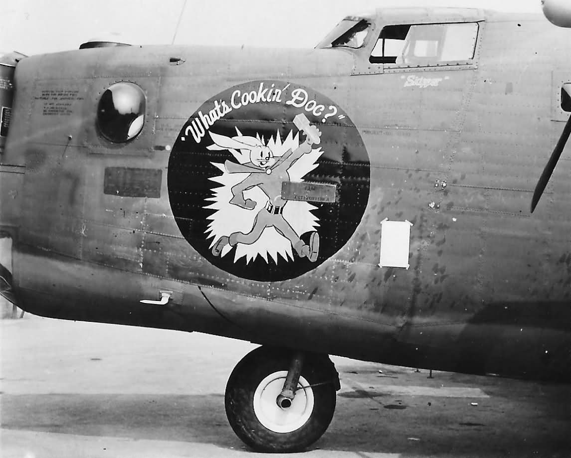 B-24J Liberator 42-110157 of the 466th Bomb Group, 786th BS “Whats Cookin Doc” nose art