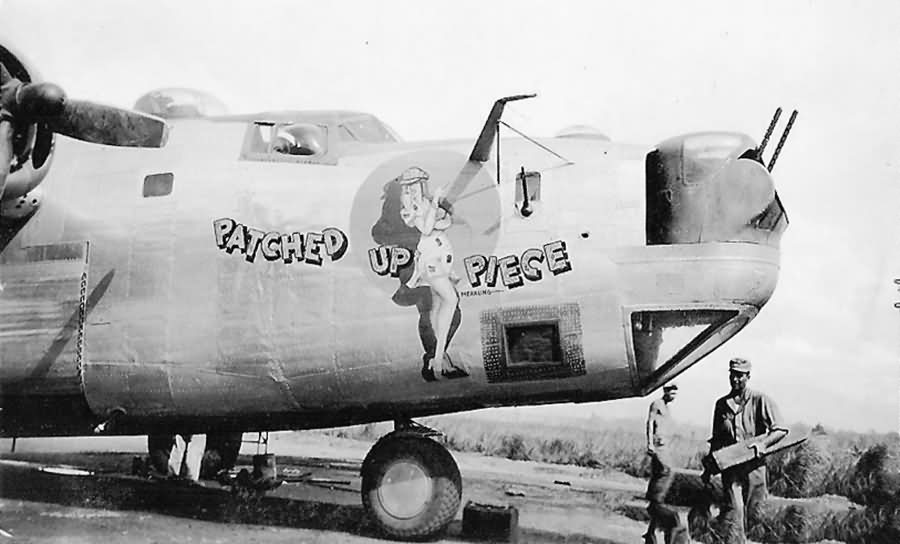 The aircraft is notable for its service with the 20th Combat Mapping Squadron at Morotai on August 14, 1944, during a challenging mission. “PATCHED UP PIECE” is distinguished by its lack of national insignia on its fuselage and its unique nose art, created by Al Merkling, who was renowned for his artistic talents on B-24 bombers.