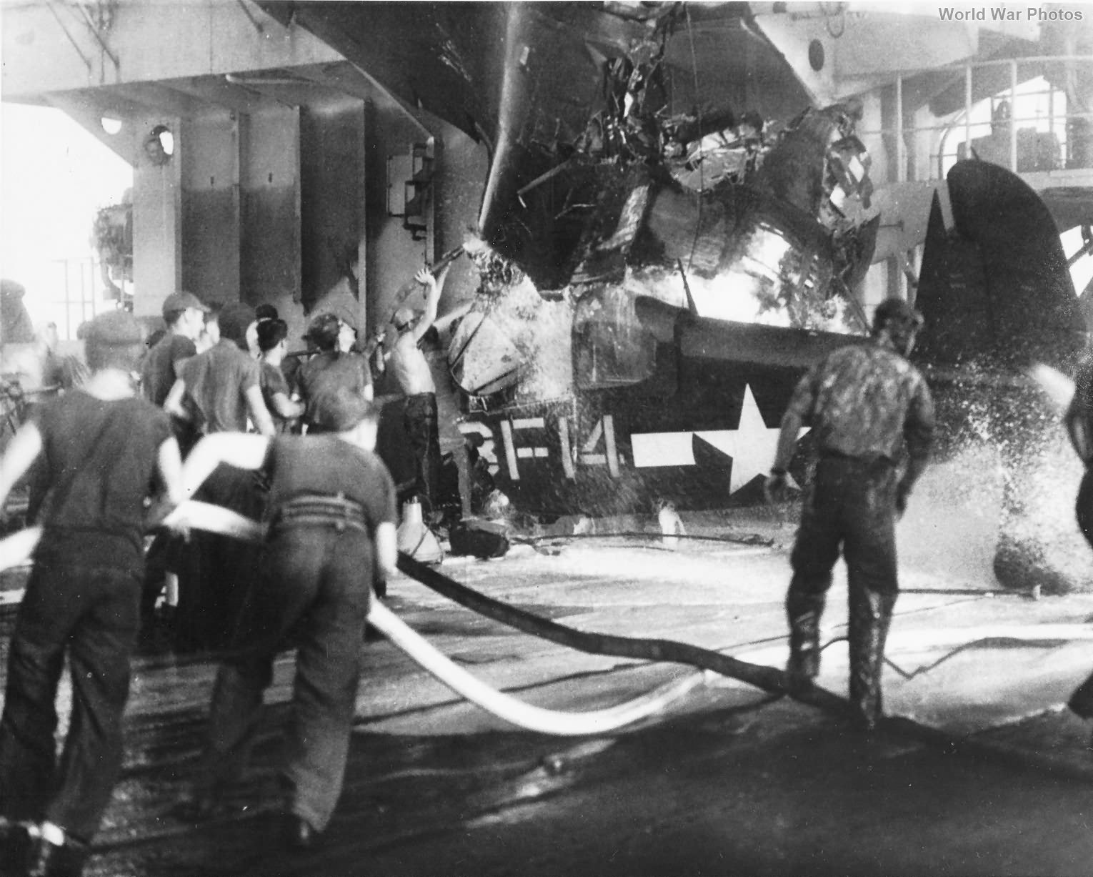 Crashed F4U aboard USS Prince William (CVE-31) February 1945