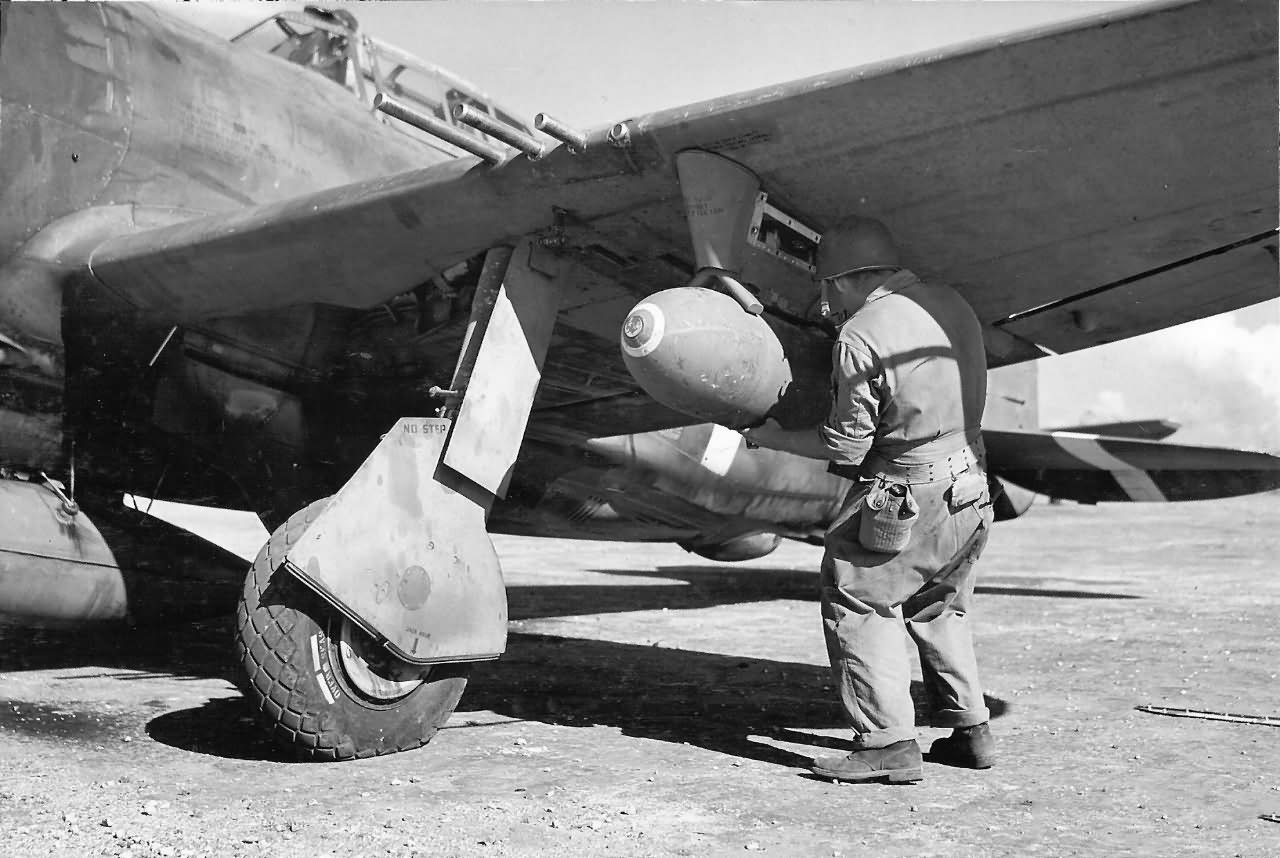 Ground Crewman Loading Bomb Onto P-47 Thunderbolt